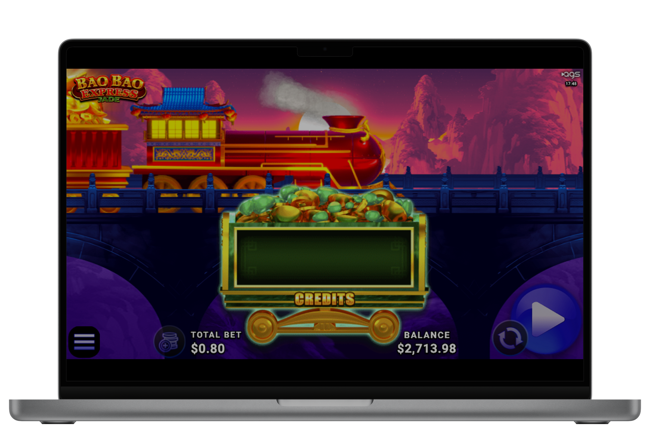 All aboard the Bao Bao Express Jade, delivering fast-moving excitement with its signature Train Win feature, and special Cash on Reels symbols that unlock unique chances for wins. High-tier COR symbols can activate the Jade Feature, sending train carts rolling by to build and multiply a special meter that awards prizes at the end of the sequence. Additional bonuses are triggered by landing special Bag Symbols, with the chance of unlocking the Extra Spins, Jackpot, and Grow features. Unlock multiple features at the same time to keep every spin full of momentum and prize-packed possibilities.