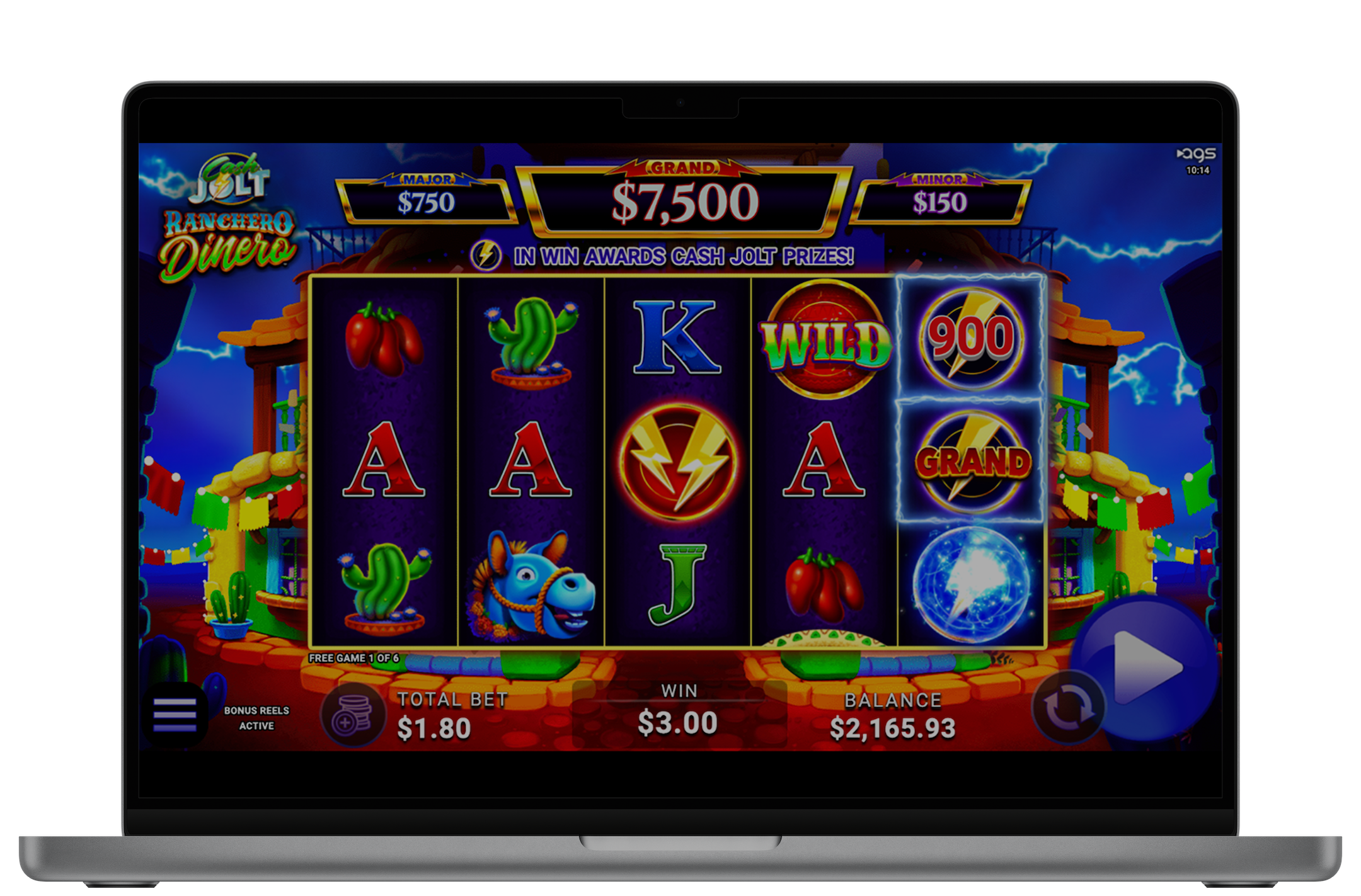 When a Cash Jolt Symbol lands on reel 5, it unlocks credit prizes or the Minor, Major, or Grand Jackpot, with Doubler Symbols boosting wins and even multiplying jackpots. Free Spins are triggered by three Bonus Symbols on reels 1, 3, and 5, awarding eight spins with expanded winning opportunities. And if a Cash Jolt just misses, the Second Chance Feature gives players one more shot at a massive reward.