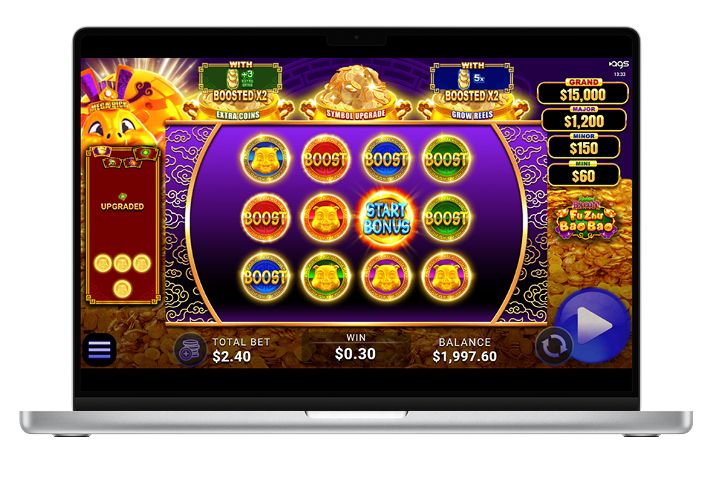 Rakin’ Bacon Fu Zhu Bao Bao brings the excitement to new heights with Ingot prizes, Wild Coins, and a collection of thrilling bonus features, including the Mega Pick Bonus! Pot Bonuses trigger special rounds, with the Extra Spins Feature adding bonus opportunities, and the Symbol Upgrade Feature enhancing payouts.